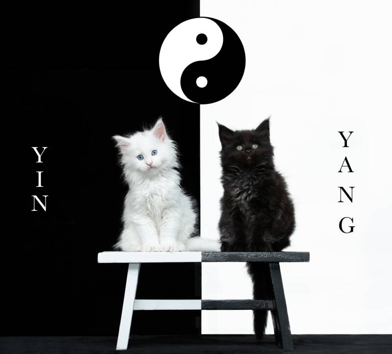 Aangezien het een zwart katertje en en wit poesje betreft, hebben ze de namen Yin & Yang gekregen.