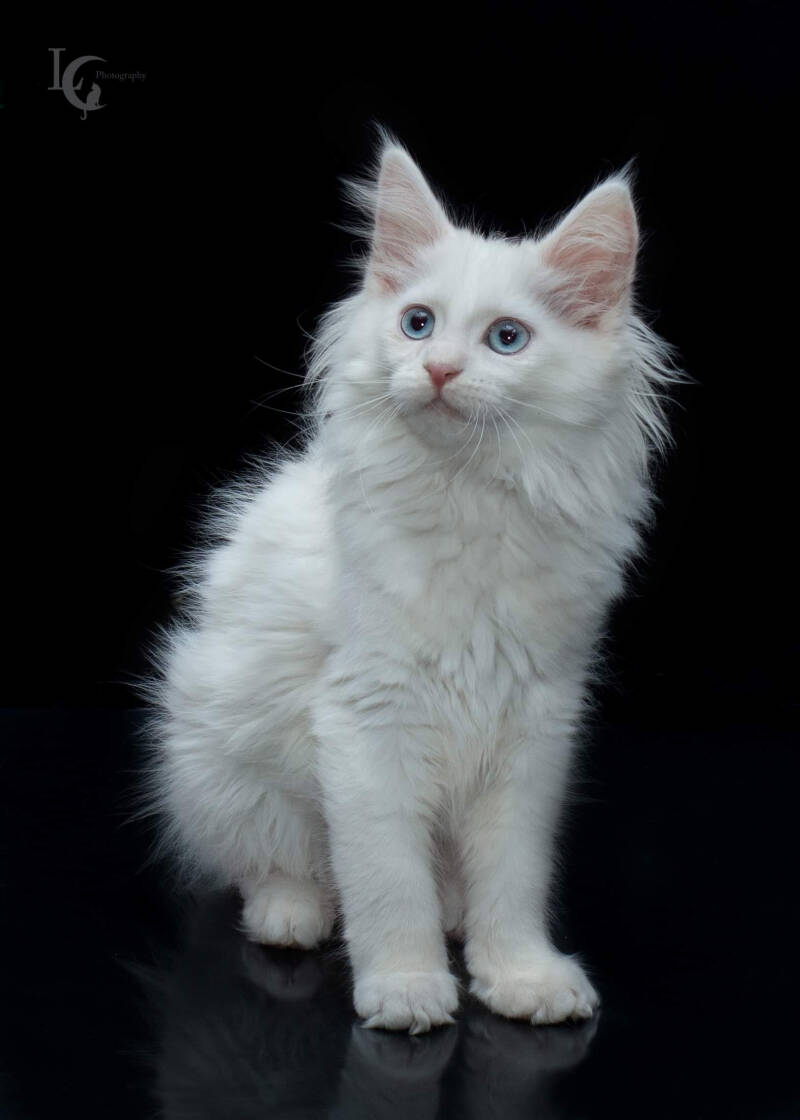 1 wit poesje met blauwe ogen.