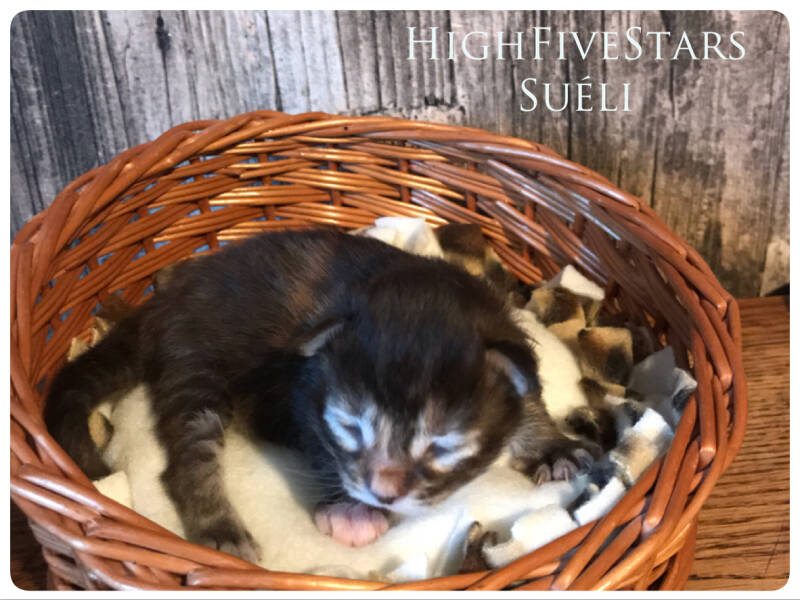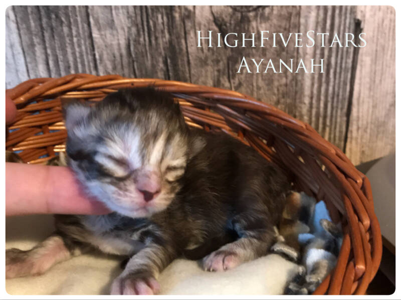 Het nest bestaat uit 2 katers, een black tabby blotched en een black smoke.